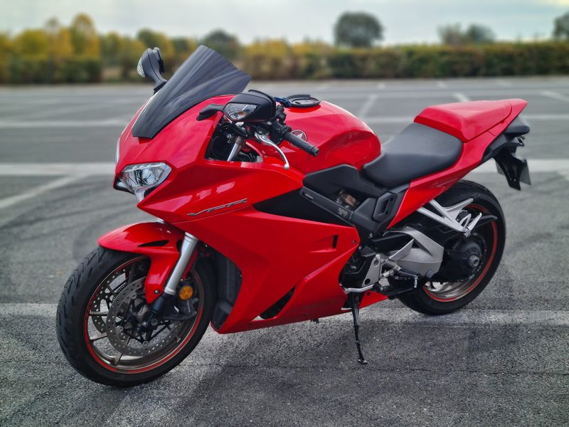 Concernant la moto : VFR800 Vtec, millésime 2006, couleur bordeau, quelques 43000km après le retour, selle confort, bulle fumée, top case, sorties Leovince (je vais recevoir l'origine par la poste), pas de chute/griffures, entretien suivi, bref, tout ce qu'il me faut pour rouler seul ou à deux.